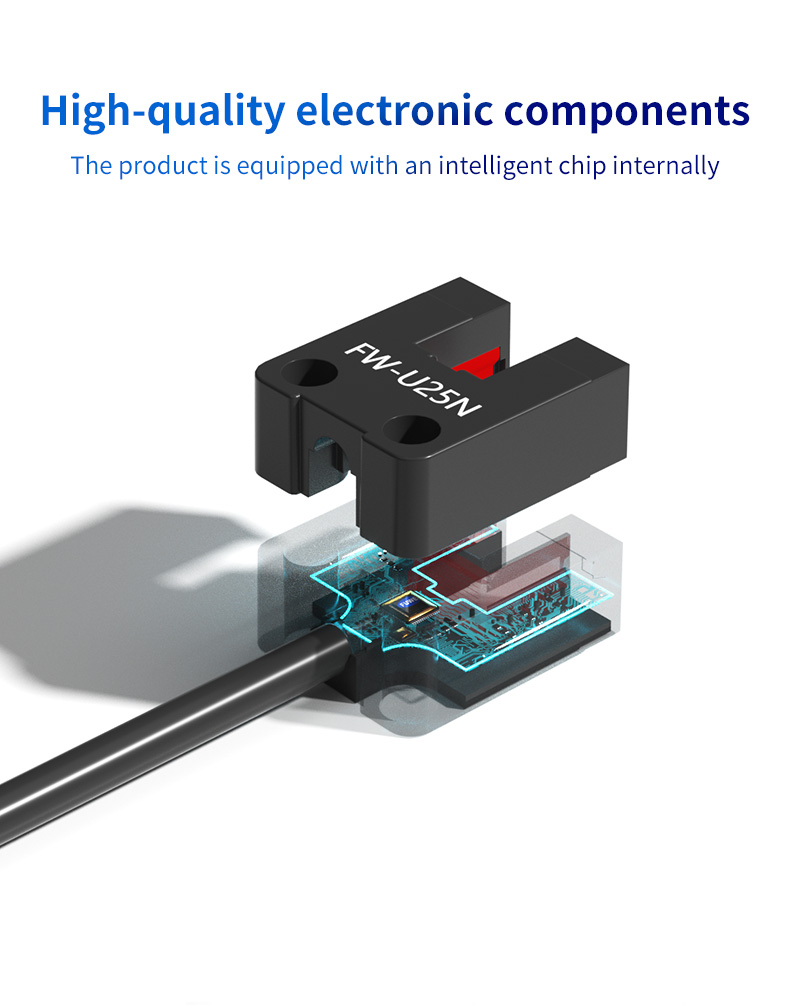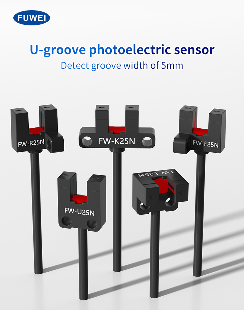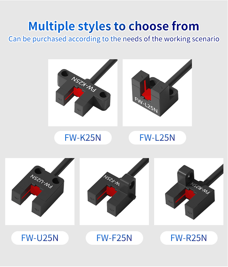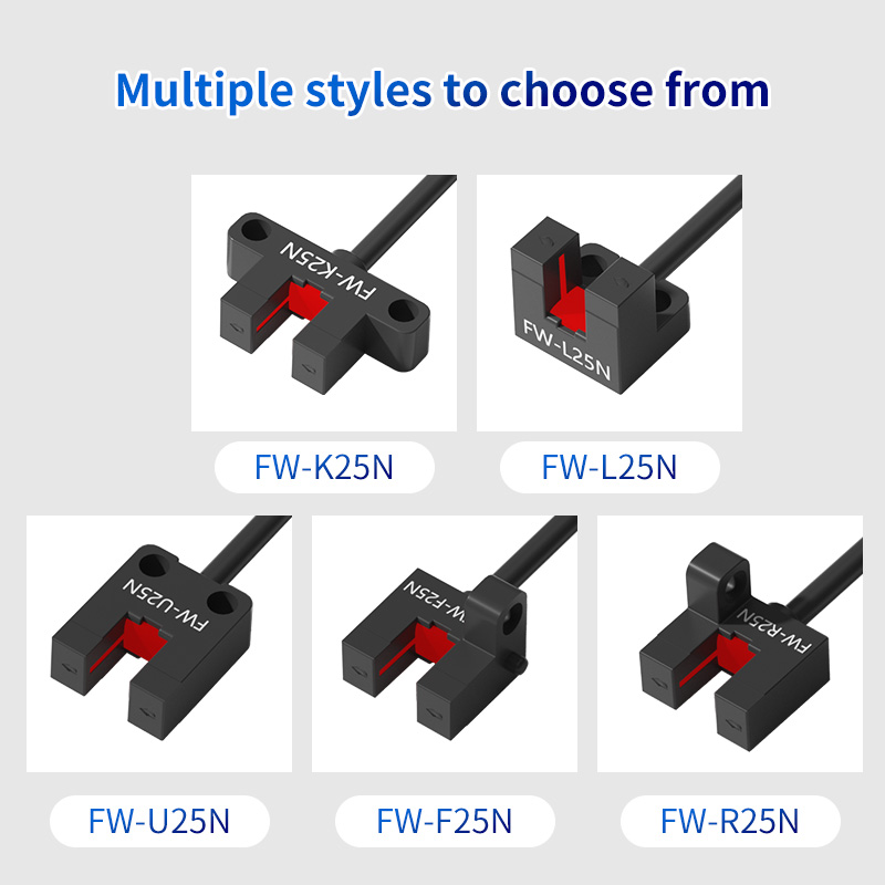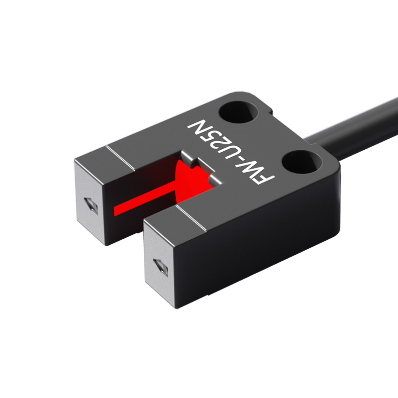Meta Description: Scopri il sensore fotoelettrico con scanalatura a U serie FW25 con un'ampiezza di rilevamento di 5 mm. Dotato di chip intelligente, alloggiamento integrale e stili versatili per il rilevamento dell'origine, il monitoraggio della velocità di rotazione e il controllo della guida. Ideale per robuste applicazioni di automazione industriale.