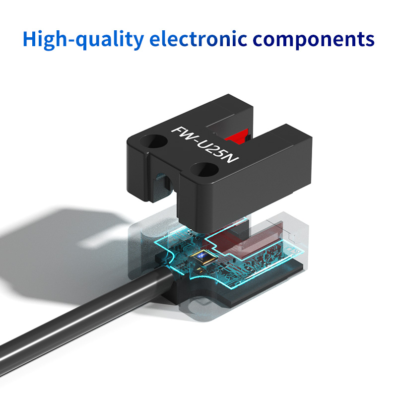 Nell'esigente mondo dell'automazione industriale, l'affidabilità e la precisione non sono solo caratteristiche: sono necessità. Il sensore fotoelettrico con scanalatura a U serie FW25 è progettato per soddisfare queste esigenze critiche, offrendo precisione e durata senza precedenti per un'ampia gamma di applicazioni di rilevamento. Con una larghezza di rilevamento della scanalatura a U standardizzata di 5 mm, questo sensore è la soluzione ideale per ingegneri e integratori di sistema che richiedono prestazioni costanti nel rilevamento di piccoli componenti, posizionamento preciso e controllo del movimento.