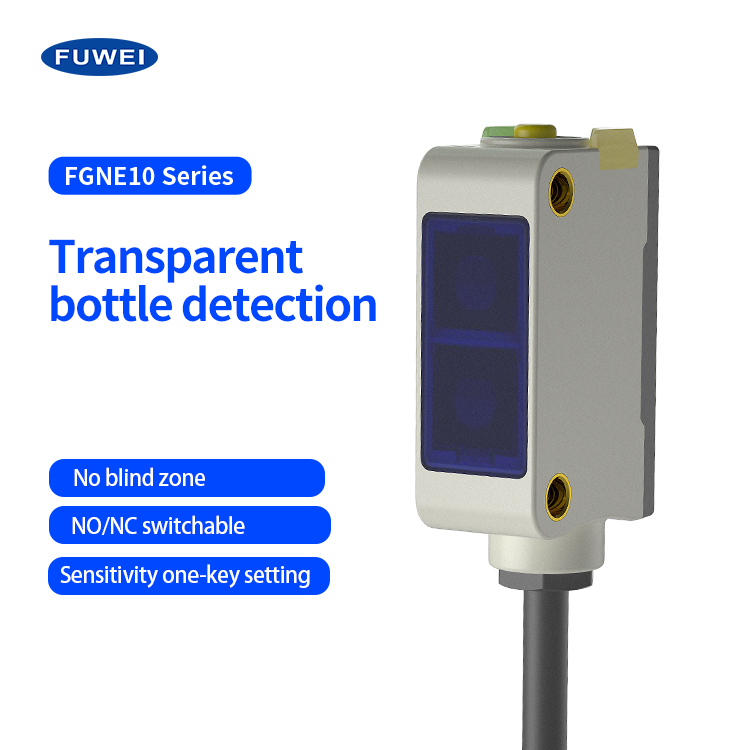 Sensore di rilevamento trasparente di bottiglie trasparente FGNE10-50NFR-T, un prodotto delle capacità di produzione avanzate della Cina, è un ottimo esempio dell'impegno di Fuwei per la qualità e l'innovazione.