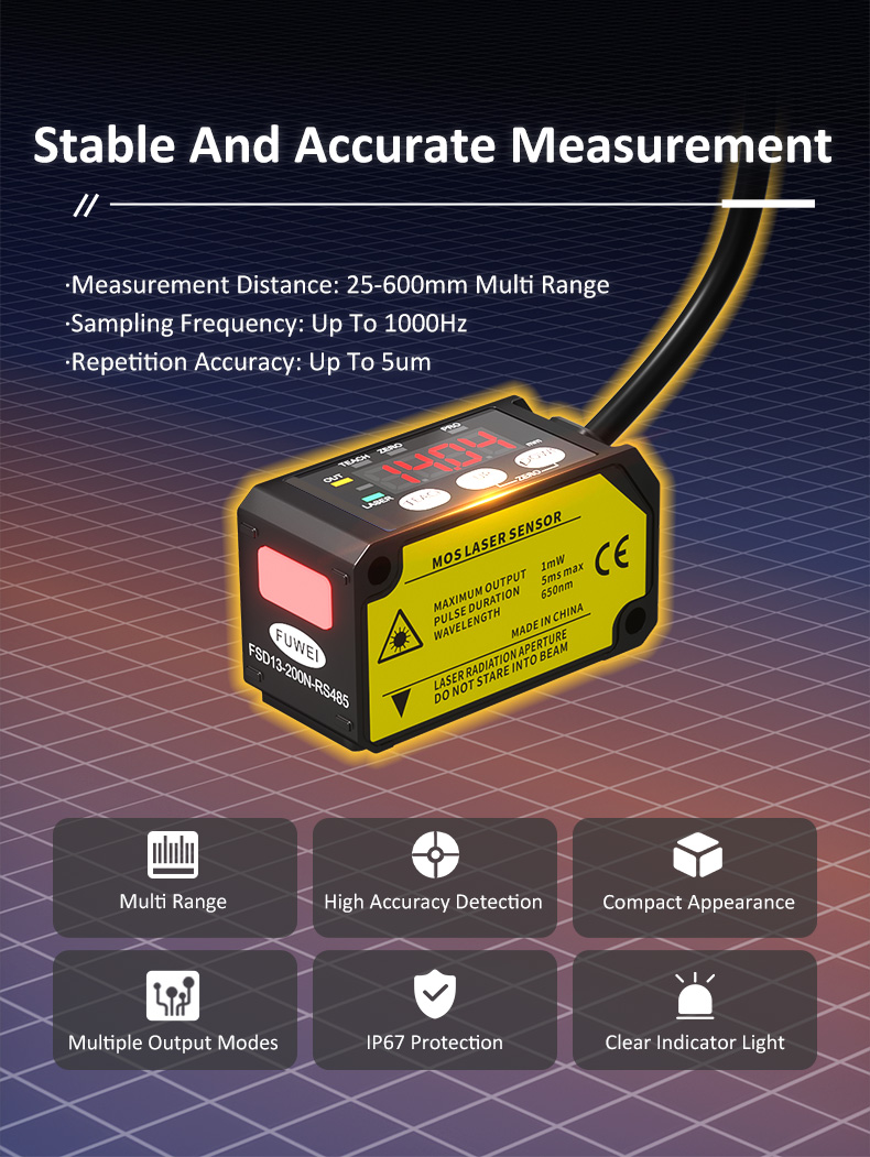 Nel campo dell'automazione industriale, la misurazione di spostamento ad alta precisione e ad alta affidabilità è sempre stata la garanzia di base dell'efficienza di produzione e della qualità del prodotto. Appena lanciato di Fuwei ElectronicsSensore di spostamento laser CMOS Serie FSD13, con la sua progettazione tecnica rivoluzionaria e rigorosi standard di livello industriale, fornisce soluzioni di rilevamento intelligenti di precisione a livello di millimetro e stabilità a livello micrometro "per industrie come produzione meccanica, imballaggi elettronici e imballaggi alimentari, ridefinire gli standard di misurazione in condizioni operative complesse.