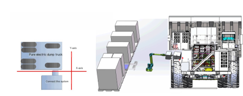 Sistema di posizionamento visivo: utilizzo di telecamere ad alta precisione e algoritmi visivi per ottenere un posizionamento preciso della porta di ricarica su camion di dump. Il sistema visivo deve avere la capacità di resistere alla polvere e alla luce solare diretta, garantendo un funzionamento stabile in vari ambienti interni.