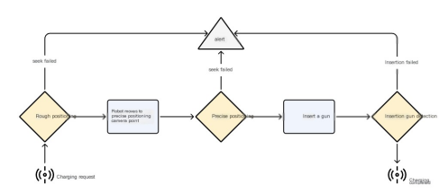 Robot e meccanismi di spinta delle pistole: i robot industriali con armato di braccio di 3 m o più sono selezionati, dotati di meccanismi di spinta delle armi appositamente progettati. Il meccanismo di spinta della pistola dovrebbe avere una spinta e una precisione sufficienti per garantire che la pistola di ricarica possa essere inserita con precisione e rapidamente nella porta di ricarica.