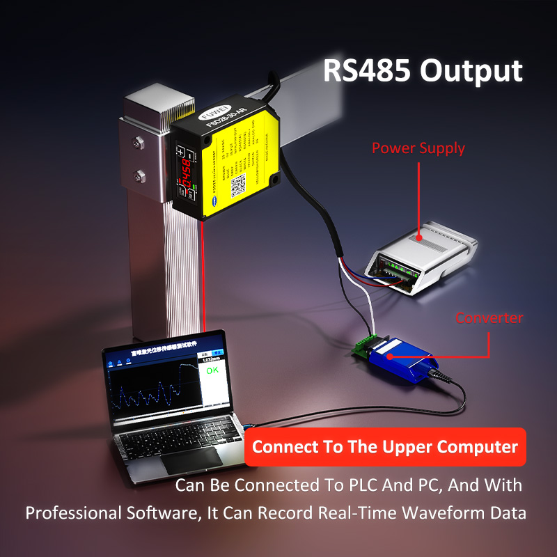 Per soddisfare le diverse esigenze di connettività dei dispositivi, i sensori di spostamento laser della serie FSD26 offrono più opzioni di uscita. Le configurazioni standard includono uscite di comunicazione RS485 e uscite NPN o PNP, con uscite di corrente/tensione analogiche opzionali disponibili. Ciò consente l'integrazione senza sforzo con PLC, computer industriali e altre attrezzature.