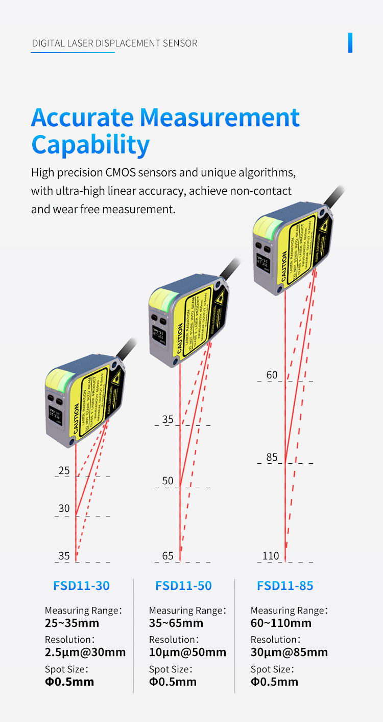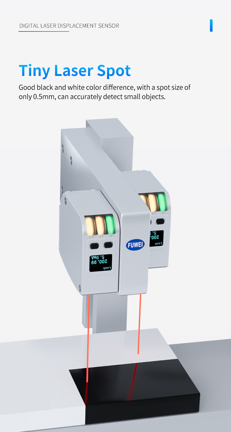 Nel campo del controllo di precisione nella moderna produzione industriale, ogni misurazione e posizionamento sottile è direttamente correlato alla qualità e all'efficienza produttiva del prodotto. Il sensore di rilevamento laser della serie Fuwei FSD11, ottimizzato con un algoritmo unico, può ottenere un rilevamento stabile e affidabile di piccoli oggetti. Che si tratti di monitorare l'altezza dell'impilamento delle schede PCB o di rilevare la presenza o l'assenza di guarnizioni dei tappi delle bottiglie, può garantire l'accuratezza dei dati di misurazione. Questa capacità di rilevamento ad alta precisione fornisce una solida garanzia per il controllo di qualità sulla linea di produzione.