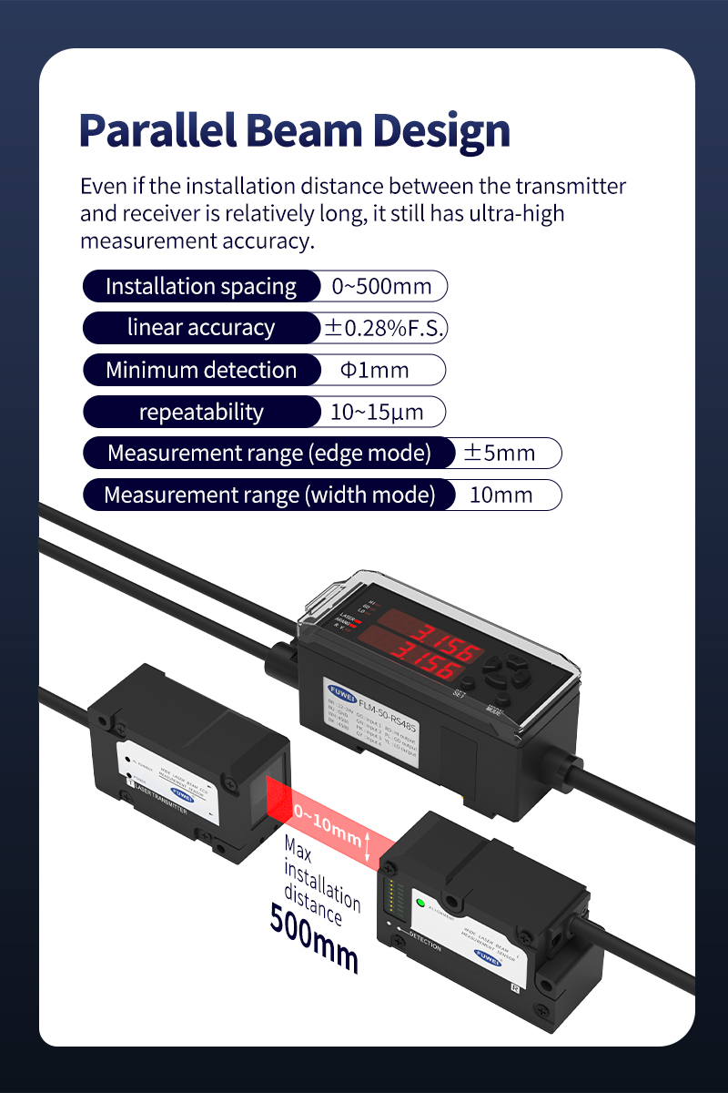 Sotto l'ondata di industria 4.0, la tecnologia di misurazione non contatto ad alta precisione è diventata il "motore centrale" della produzione intelligente eSensori di misurazione del diametro del filo CCDsono diventati uno strumento chiave nel campo della produzione di precisione grazie alle loro eccellenti prestazioni in tempo reale, capacità anti-interferenza e precisione a livello di micron. Il sensore di misurazione della distanza laser FLM-50-RS485 lanciato da FWE prende una risposta rapida 2ms e una ripetibilità di 10 μm come vantaggi fondamentali e si combina con un design innovativo per fornire soluzioni di misurazione efficienti e stabili per scenari industriali.